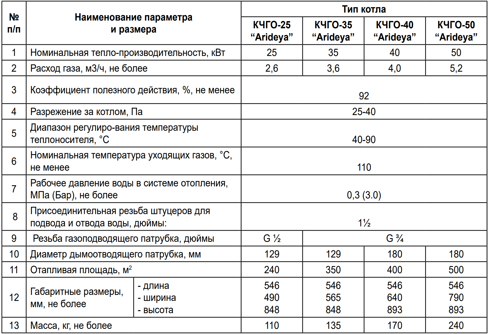 Чугунный газовый котел Arideya (Аридея) КЧГО 25 применяется для обустройства отопительной системы внутри загородного или дачного дома, офиса, коттеджа и других строений. Газовые отопительные котлы ARIDEYA серии КЧГО с чугунным теплообменником являются энергонезависимым оборудованием для отопления. Котлы ARIDEYA серии КЧГО изготовлены на основе чугунного теплообменника российского производства толщиной 4 мм. и оснащены оригинальными компонентами газогорелочного устройства и газовым клапаном итальянского концерна SIT Group, а также инжекционной микрофакельной горелкой Worgas (Италия). Качественная автоматика гарантирует безопасную эксплуатацию и защиту от внештатных ситуаций. Обязательное условие в помещении для установки котла - наличие вентиляционного канала.